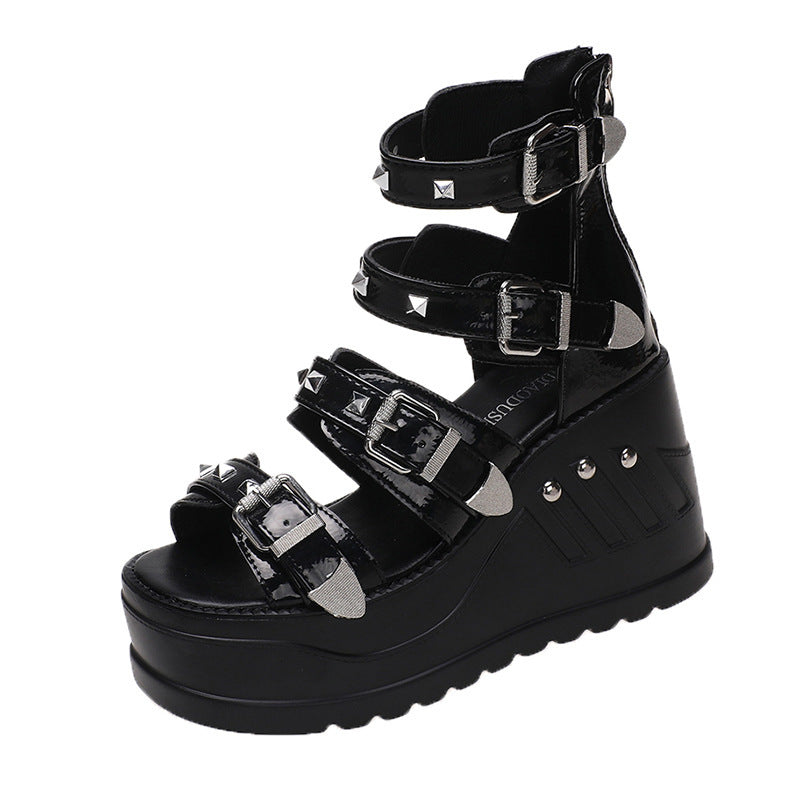 Biker-Style Wedge Sandals – Bold, Edgy & Buckle Detail!